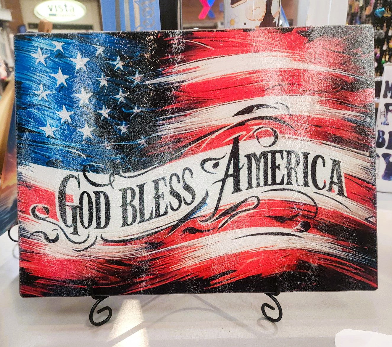 Watercolor God Bless America U.S. Flag - Sublimated Glass Cutting Board - Premium Durability & Vibrant Designs